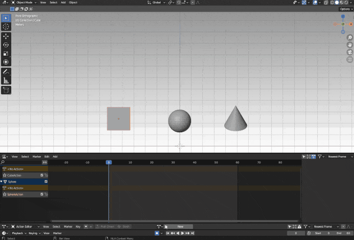 - Make sure you have the Dope Sheet > Action Editor tab open and click on New to add an animation clip.