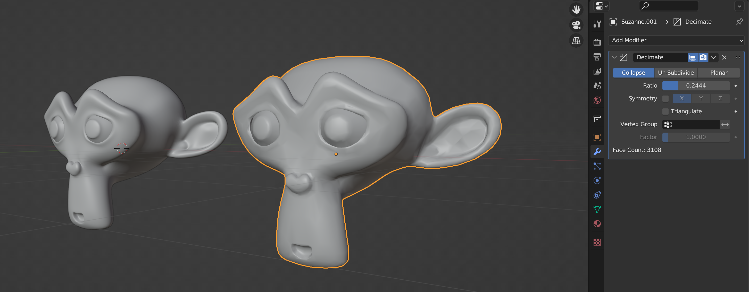 This is a well known modifier that can be used to reduce the amount of tris of your mesh while keeping the surface structure of the model. While this is a very powerful tool to optimize models take into account that once the model is decimated the topology may be affected causing a bad topology (because it breaks the geometry into unpredictable pieces). In another hand, decimation will convert the quads of your mesh into triangles making it difficult to modify it after being used. In that regard decimation can be useful for static models but is not preferred for animated models.