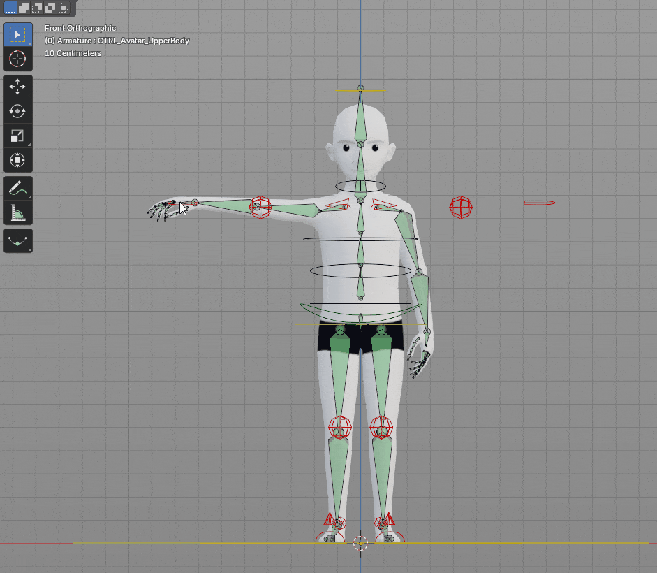 Deforming bones are the ones that will deform the mesh, they are responsible for the way the model moves. That’s the base skeleton and it should not be edited at all. Changing it in any way can break the rig and the animation won’t work when exported. For this reason, this base rig was moved to its own layer (the last one at the bottom). These bones are the armature that’s exported with the mesh.