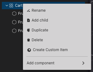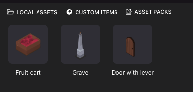 📔 Note: When defining a Custom Item, you take a snapshot of the state of every component on the selected entities (except for the root entity’s position, rotation, and scale). This includes Actions, Triggers, Multiplayer, Visibility, and any other component.