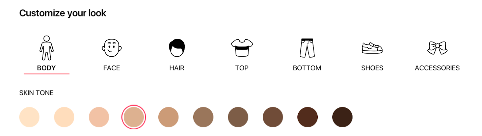 Each base mesh comes with its own skin texture.