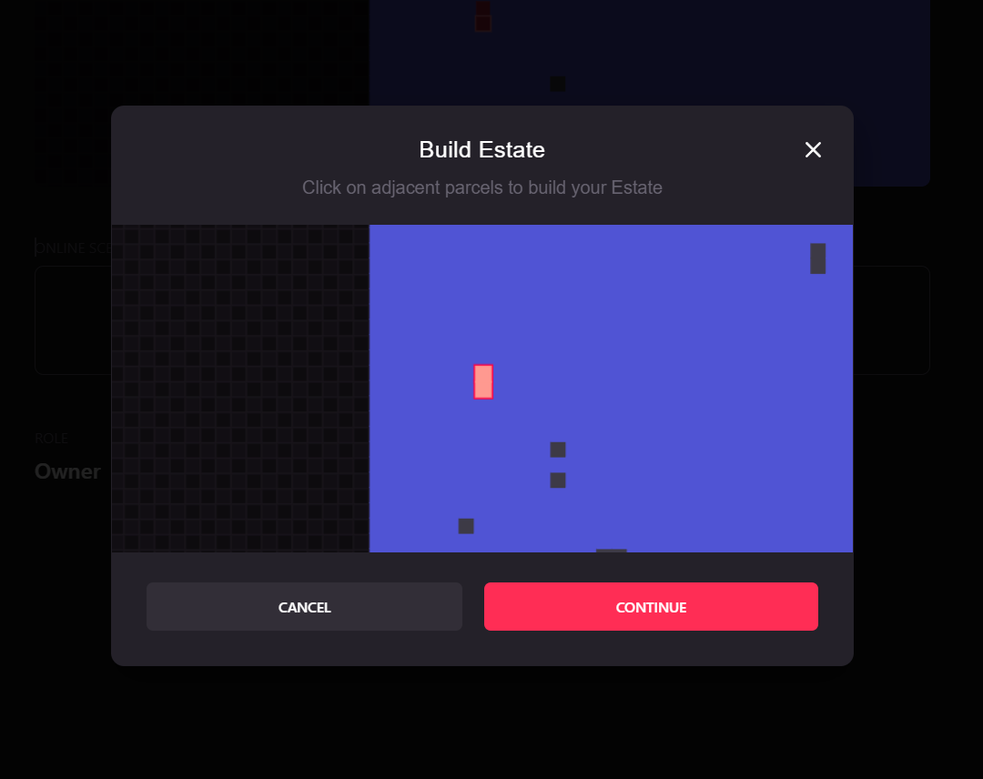 To create your first Estate, you need to own two or more adjacent LAND parcels.